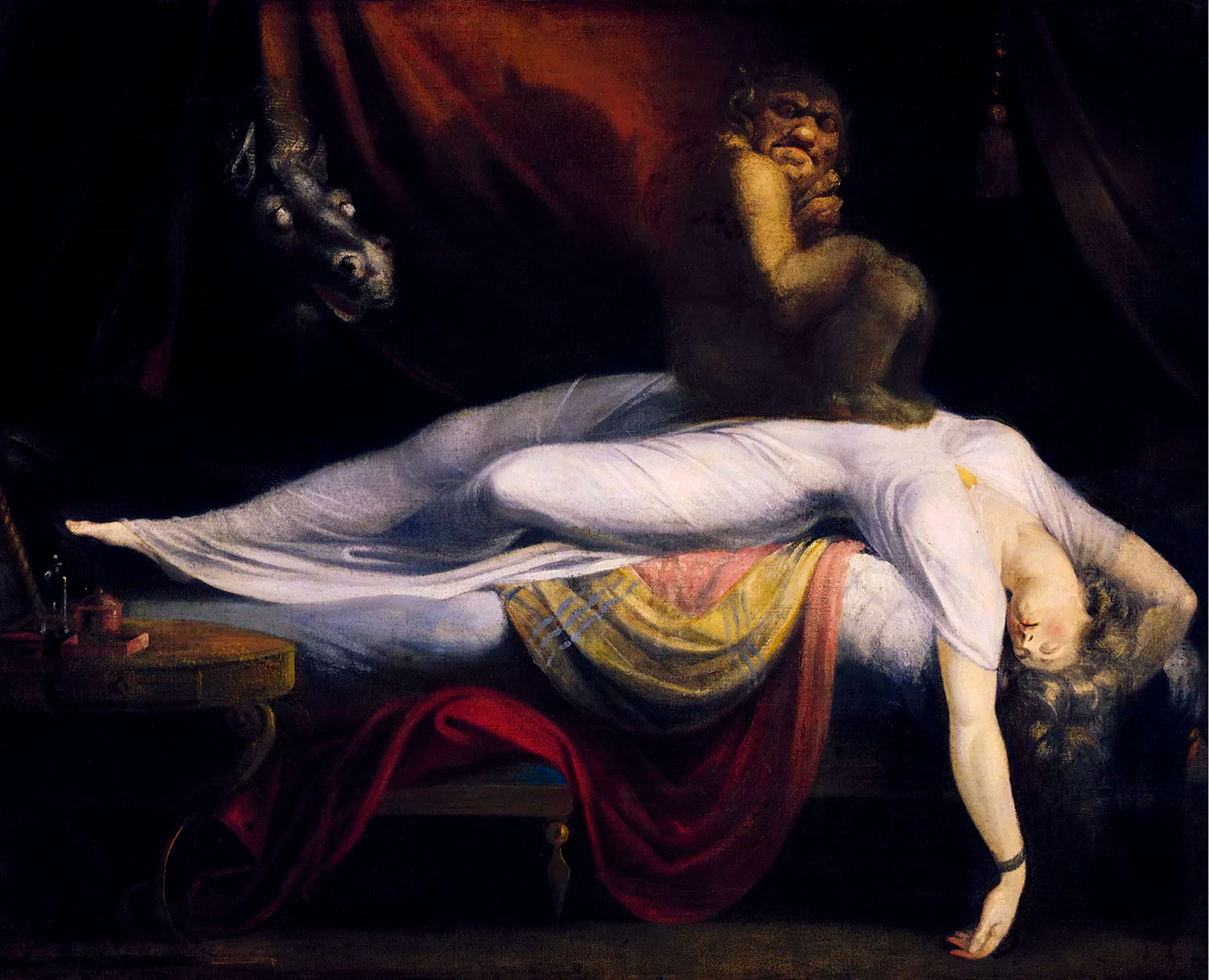 LA PESADILLA, de Johann Heinrich Fussli (Henry Fuseli) 1781. Oleo, 127 x 102 cm. Detroit Institute of the Arts.