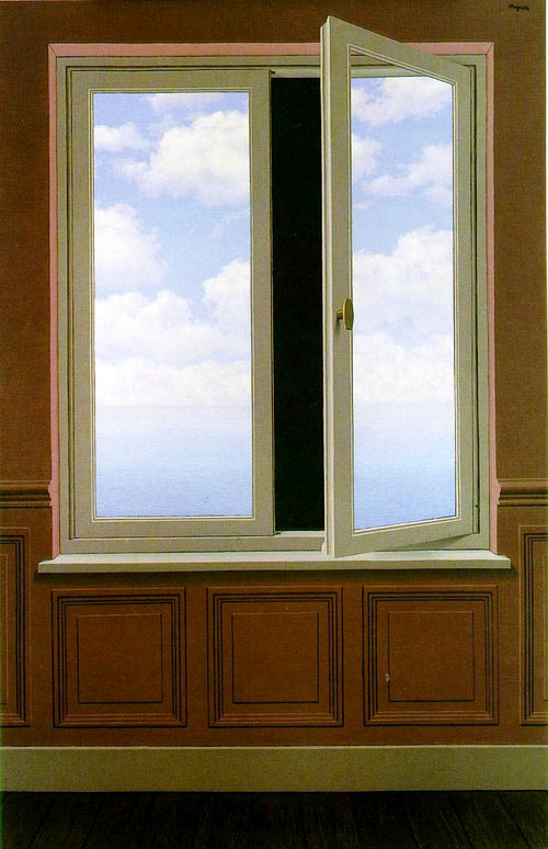A continuación, otros dos cuadros de Magritte en los que una ventana, abierta o cerrada, se inscribe en el cuadro, y que son mencionados por Serge Leclaire en la nota al pie nº 10 de "Psicoanalizar" cuando refiere a la intervención de Lacan en esas Jornadas sobre el Fantasma: "La clé des champs" y "La lunette d'approche".