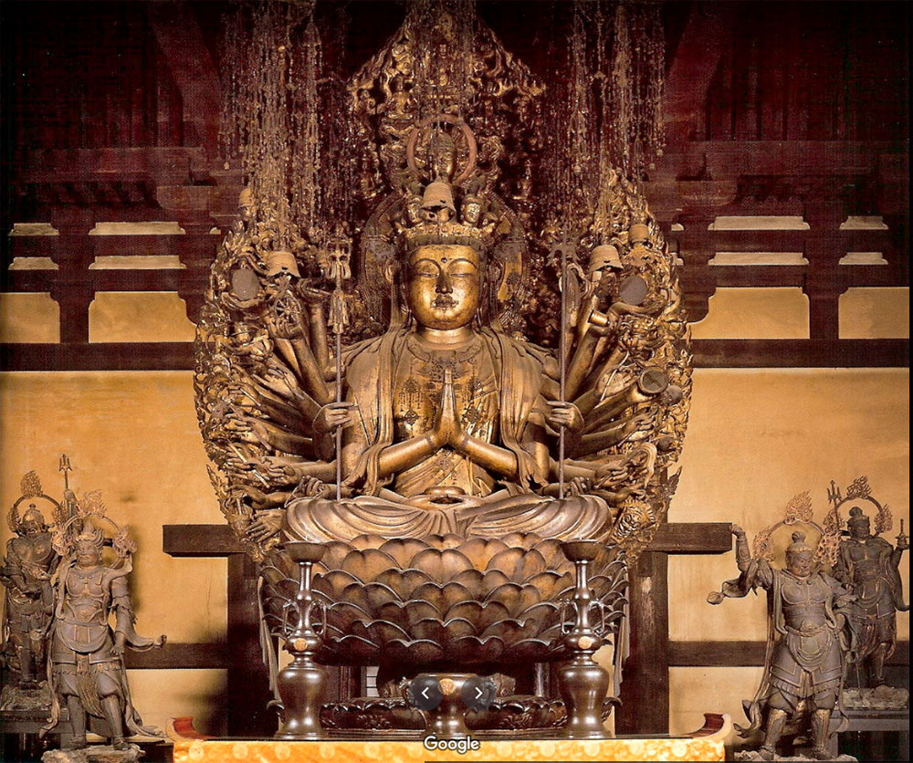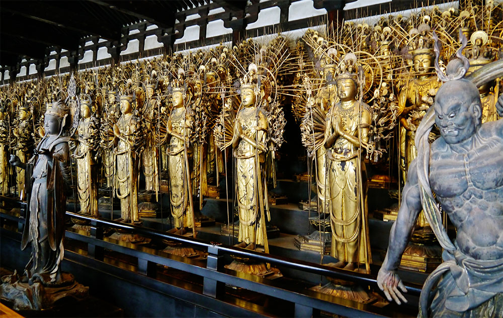 Pero, como ya señalamos, esas estatuas no se encuentran en Kamakura (ni en Nara), sino en el templo Sanjūsangen-dō, en Kyoto