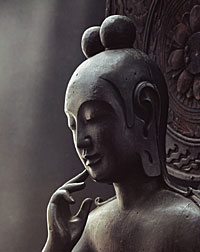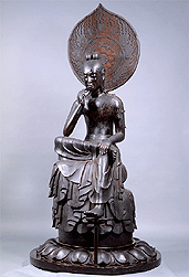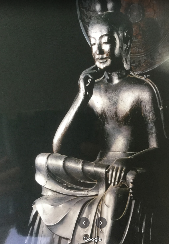 Esta estatua, hecha de madera de alcanfor, no se encuentra en el templo Todai-ji, como indica Lacan, sino en el convento de Chugu-ji, en Nara.