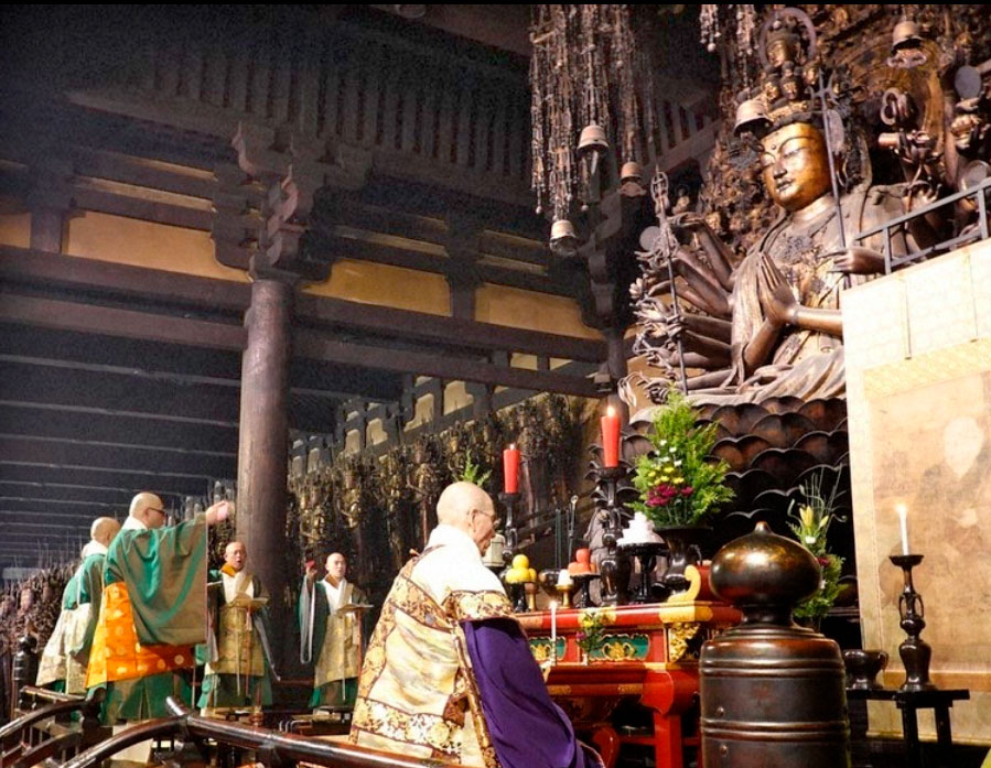 En el templo Todai-ji, en cambio, además de otras estatuas de Nyoirin Kannon Bosatsua, también está el Daibutsu (Gran Buda o Buda gigante), representación de Vairochana, cuya foto se encuentra entre las páginas 186 y 187 de la edición Paidós y 200 y 201 de la edición Seuil.