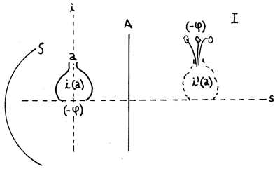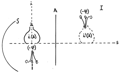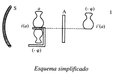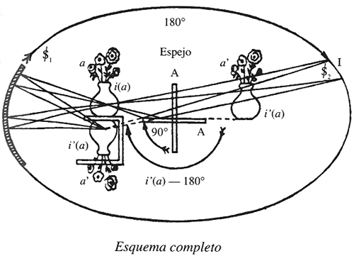 "Al borrarse progresivamente hasta una posición a 90° de su punto de partida, el Otro, como espejo en A, puede llevar al sujeto desde $1 a venir a ocupar por una rotación casi doble la posición $2, en I" (20).