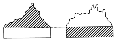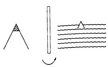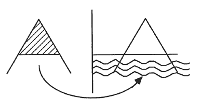 La simetría no está dada aquí, entre izquierda y derecha, por la especularidad de algún espejo, sino entre arriba y abajo, por la inversión entre zonas de intensidad diferente de investidura (las rayas indican mayor investidura y el blanco indica menor investidura). La zona rayada, a la izquierda y arriba, es una zona de fuerte investidura. Lo que le corresponde, arriba a la derecha, es una zona en blanco, de débil investidura. "Abraham nos lo explica de la forma más clara - si los genitales no están investidos en el objeto, es en la medida en que en el sujeto permanecen investidos" (7)Para entender este razonamiento puede ser útil recordar que Freud considera la libido a semejanza de un líquido. En "Introducción del narcisismo" plantea que "el enamoramiento consiste en un desborde (Uberströmen) de la libido yoica sobre el objeto" (8), donde "Uberströmen" significa tanto desbordar como inundar o sumergir: la palabra "strom" significa "río, flujo, torrente". La libido del yo se derramaría sobre el objeto como un río que desborda su lecho e inunda los alrededores, recubriéndolo y sumergiéndolo.