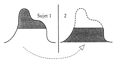 En este esquema, se trata de saber qué relación existe entre, por una parte, el objeto del deseo, y por la otra, el correlato libidinal de este hecho. "Lo que emerge [a la derecha] en estado de forma fascinante es investido por las ondas libidinales que provienen de donde ha sido retirado, o sea, del fundamento, por así decir, narcisista, del que se extrae todo lo que formará la estructura objetal, en cuanto tal, a condición de respetar sus relaciones y sus elementos" (9)