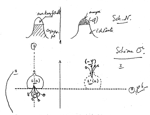Es tiempo, entonces de volver a nuestra sesión del 28 de noviembre de 1962, en el seminario la angustia. En la primera página de la estenotipia aparecen estos dos esquemas: la cuarta y última versión de este esquema, bautizada, justamente, como esquema N, junto a otra versión del esquema o (óptico).
