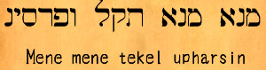 Los versículos 26-28 juegan con estas palabras: mené sugiere el verbo maná (medir), tequel, el verbo šagal (pesar), y parsin, a la vez el verbo parás (dividir) y el nombre de los persas.