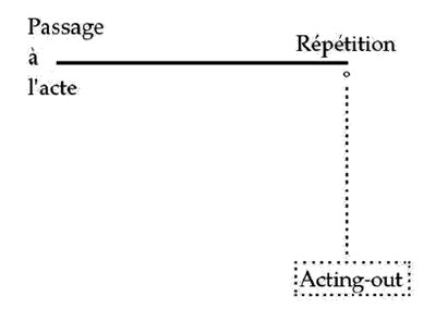 El acto no es una manifestación de movimiento. El acto solo puede definirse sobre el fundamento de la doble bucle, es decir, de la repetición. Y es precisamente en esto que "el acto es fundador del sujeto" (159).