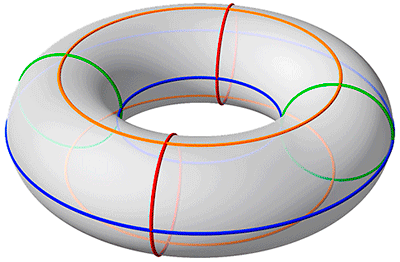Con el resultado de ese corte mediano, cociendo de otro modo sus bordes, obtenemos la superficie de un toro, sobre la que sigue marcado el corte constituido por el doble bucle de la repetición.