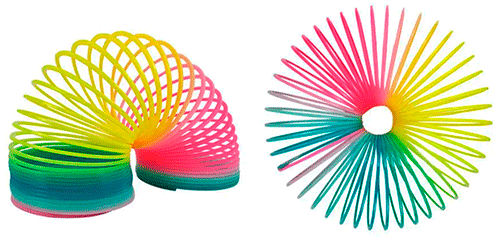 Para el caso de una banda de Moebius, por ejemplo, puntos que, en apariencia, están de “lados” opuestos (como sería en el caso del cilindro o del toro), pueden revelarse estando de un mismo “lado”. El ejemplo clásico es el chiste del “familionario” (1), donde por un lado tenemos un trato “familiar” y por el otro un trato de “millonario”, como dos “lados” "diferentes", pero que en un momento resultan “coincidir” en la fórmula de “familionariamente”.En el caso del toro, tenemos un tubo que envuelve un espacio. Ese “tubo” lo podemos pensar como un tubo de resortes, para dar cuenta de cómo esa superficie representa una sucesión, interminable, de vueltas, como podría ilustrarlo esos juguetes llamados “resorte mágico”.