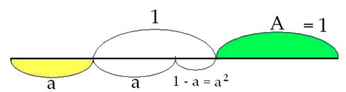 El punto donde se produce el límite de convergencia entre las series de potencias pares e impares reparte el campo 1 en las magnitudes a para la sumatoria de las potencias pares y a2 para la sumatoria de las potencias impares (ya vimos que a2 = 1 - a, por lo tanto, a2 + a = 1)