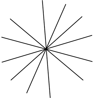 Haz infinito de rectas que pasan por un puntoPara transportarlo a dos dimensiones debo proyectarlo sobre una superficie. Para eso corto cada una de las rectas en un punto sobre una esfera que incluya en su centro el punto de cruce inicial de todas las rectas. De ese modo obtengo una proyección de todo el espacio (en tanto haz de rectas) sobre la superficie de la esfera (como cuando construyo un globo terráqueo, por ejemplo).