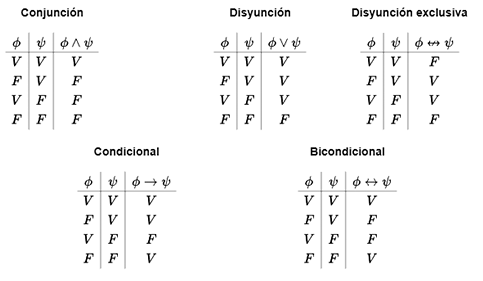 Tablas de verdad para los diferentes operadores de lógica de proposiciones