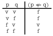 Lacan asocia el signo superior (de la conjunción), con la relación de inclusión (de teoría de conjuntos), y esta con la implicación (lógica proposicional), a la que toma como una conjunción bicondicional de equivalencia entre proposiciones, es decir, la doble implicación: "si y solamente si". La tabla de verdad de ese conector lógico binario solo da "verdadero" cuando el valor de cada proposición es el mismo: o ambos verdaderos o ambos falsos