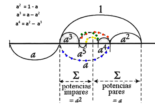 Por esta vía tenemos la serie de las potencias de a, cuya sumatoria tiende al Uno imaginario de la unidad.