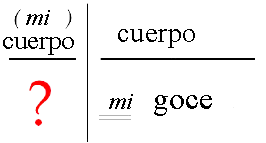 La cuestión es saber lo que hay bajo la forma de “(mi) cuerpo”, que también tiene una relación de metáfora con el goce “otro” que hace pregunta y hace la dificultad del acto sexual.La estructura de la metáfora es un significante S, en posición metafórica o de sustitución, respecto a otro significante S' y, en la medida en que el vínculo de S' con S se conserva como posible de revelar, ahí se produce un "efecto de significado", y S deviene el factor de un S (1/s), que es lo que Lacan llama "efecto metafórico de significación" (68)