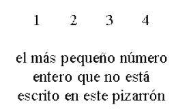 Pero, en segundo lugar, así como se planteó la opción del 5 previamente, luego se plantearía la cuestión del 6, y así sucesivamente. Pero entonces, al tener escrita la frase "el número más pequeño que no está escrito en este pizarrón", Lacan puede acotar: "cualquier cosa que ustedes digan, les diré: está escrito sobre el pizarrón" (subrayado mío) (27).