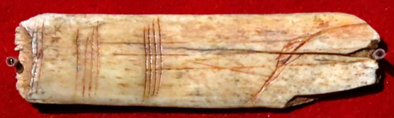 Foto del hueso con las marcas, del Museo de Saint-Germain-en-Laye.La separación de esos “trazos unarios” debió permitir, a quien los realizó, no confundir en la memoria al primer animal cazado, señalado mediante la primera barra, con el segundo, a éste con el tercero, y así sucesivamente. Pero no había en estos trazos representación de los animales cazados, o intento de referirse a su apariencia sensible, sino que esos palotes eran pura diferencia, pura distinción de las piezas en la medida en que cada una significaba “una vez”. Inútil investigar el parecido entre cada trazo: un trazo no se parece, sino que se repite, se diferencia en tanto que uno, en tanto que no ocupa el mismo lugar que otro. Tal es la lógica de lo escrito, donde la letra no existe sola, sino que supone una cadena de letras. Y tal es la lógica que, planeando sobre un vacío representacional, garantizaba la autonomía de lo que Lacan llamaba el orden de lo simbólico: “he aquí”, se dijo Lacan ante la costilla marcada, “por qué mi hija es mi hija”.