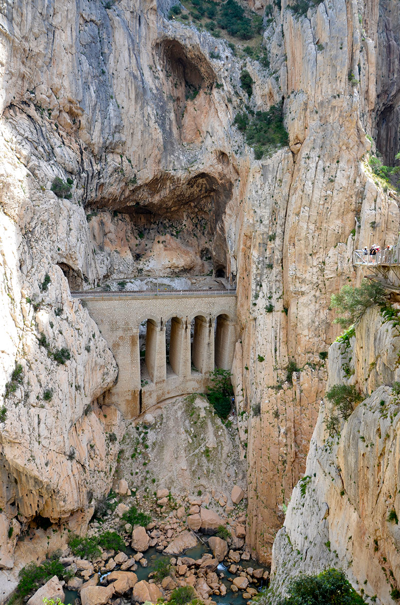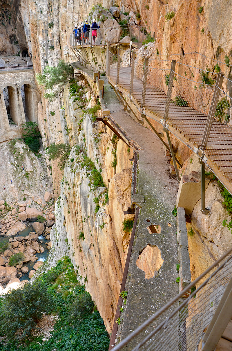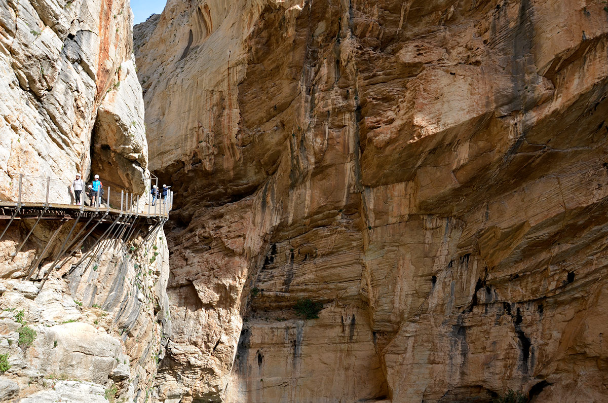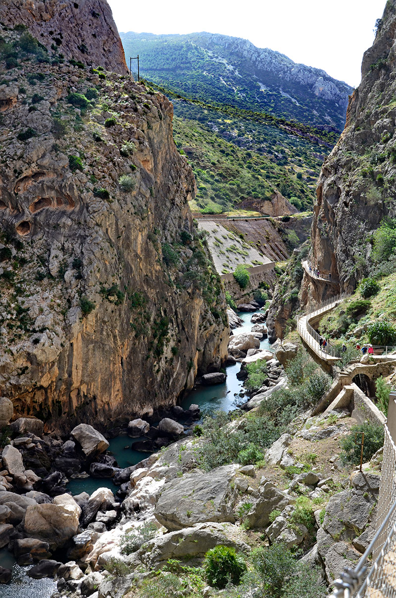 El caminito del Rey va por las laderas escarpadas del rio Guadalhorce