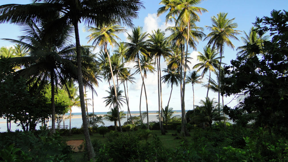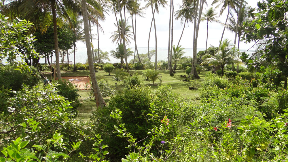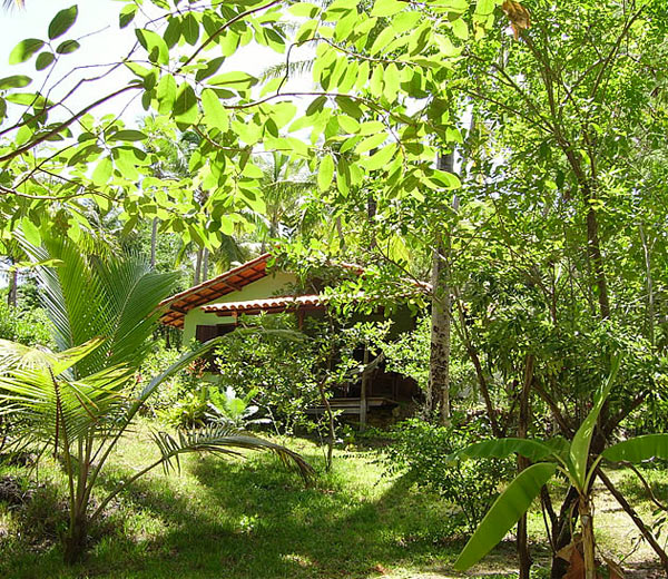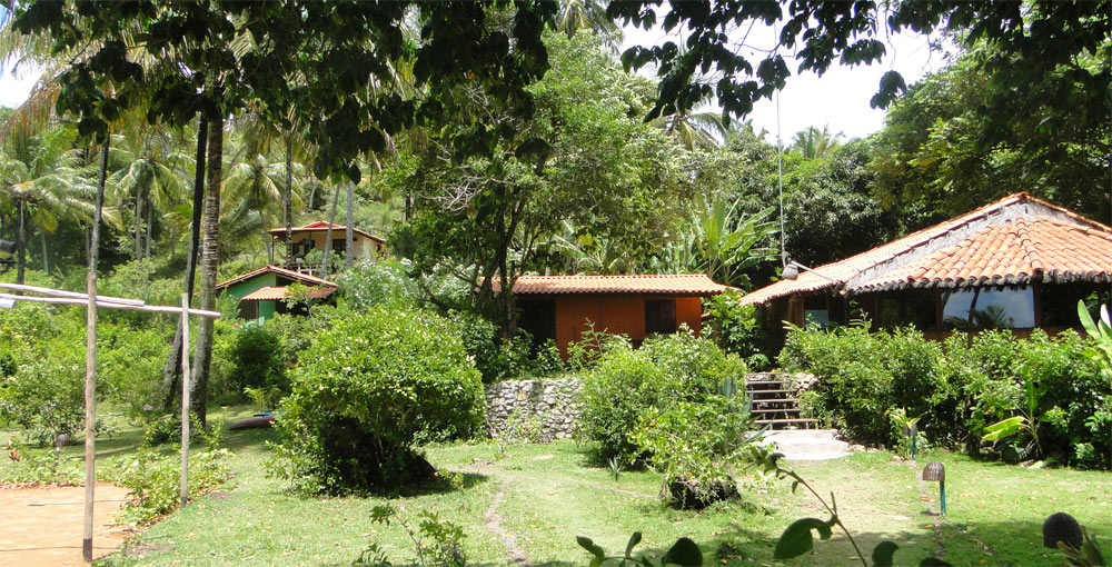 Entrada a la pousada, sobre la trilha que bordea el mar uniendo