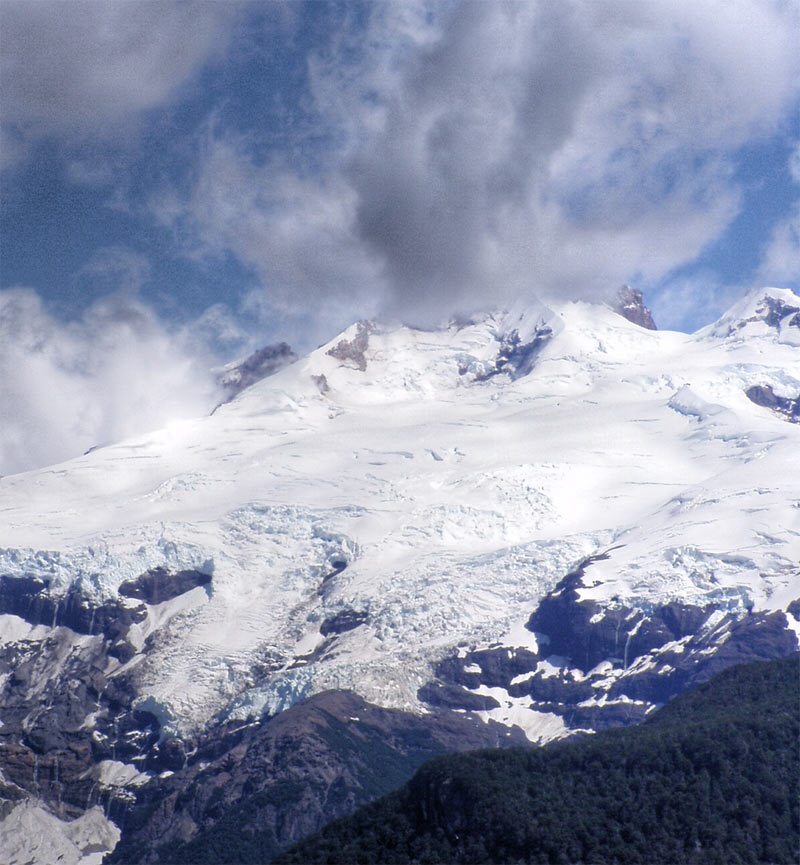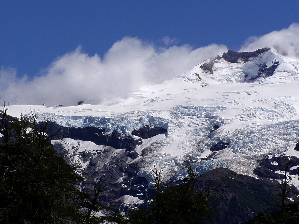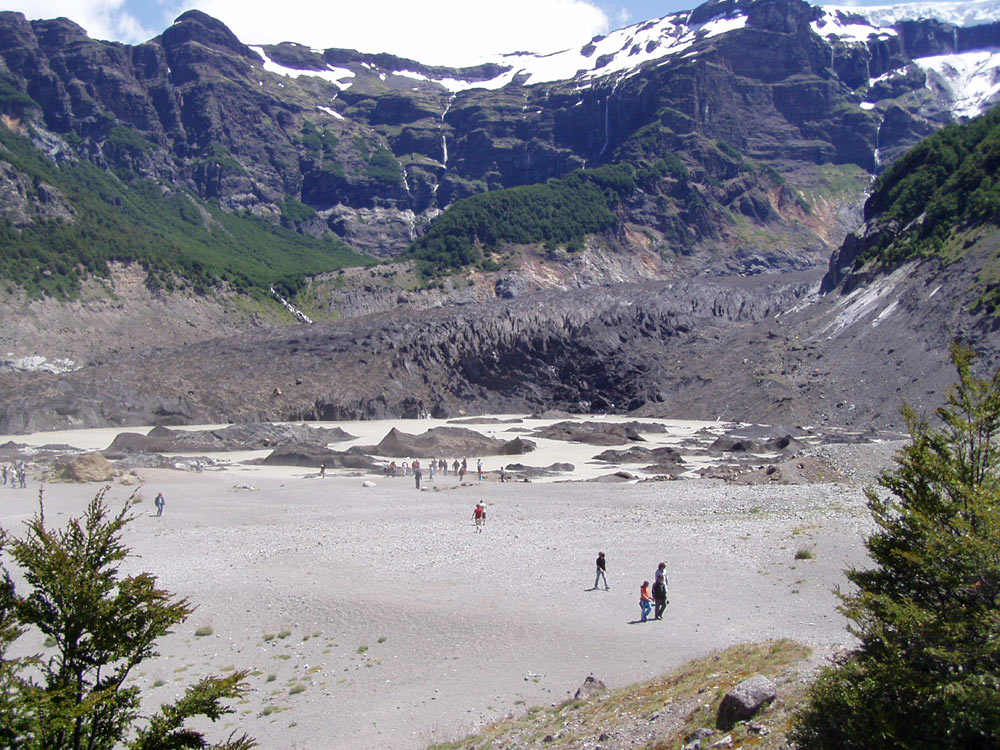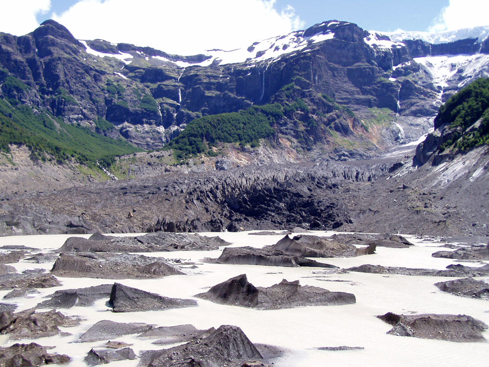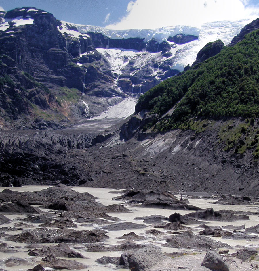 Vista general dl glaciar negro, que baja del Tronador