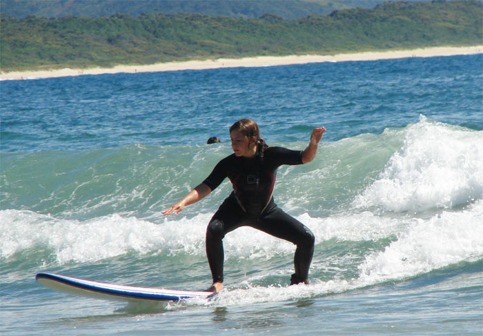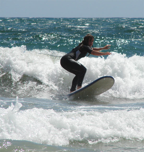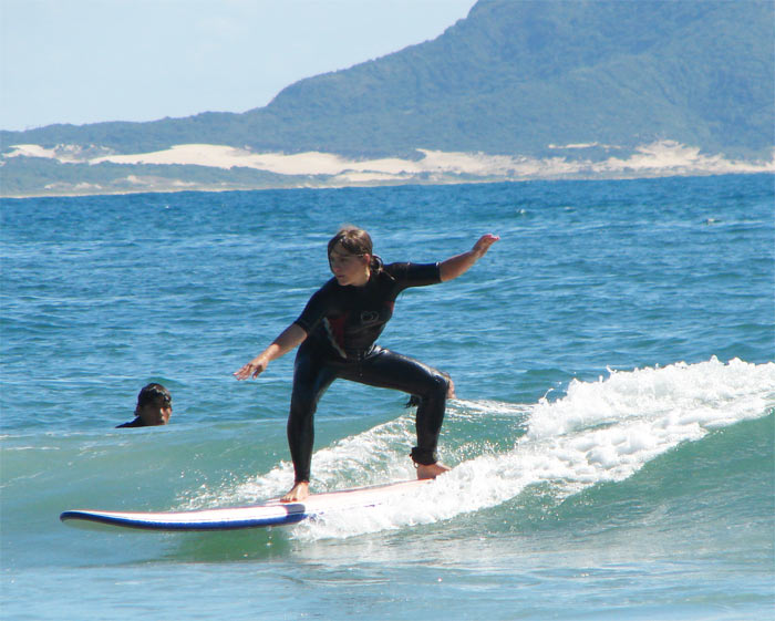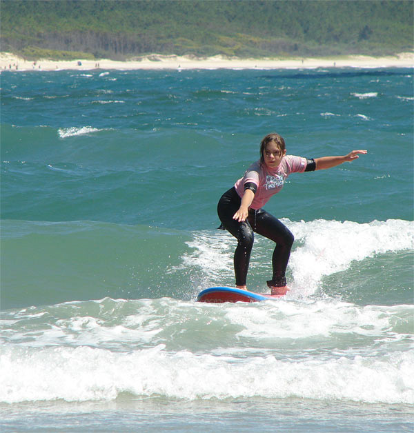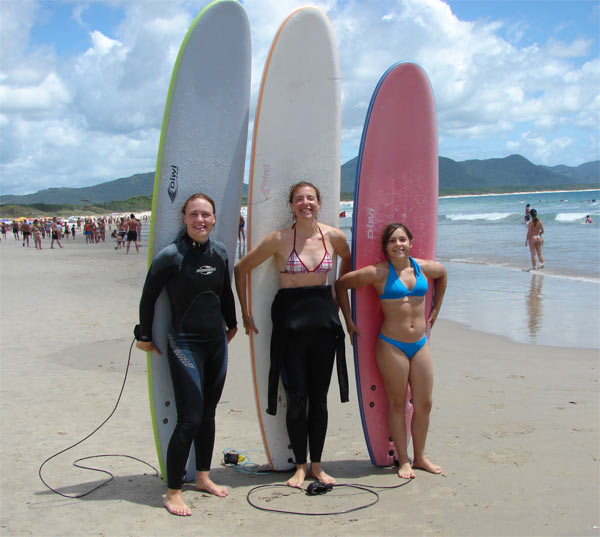 Barra da Lagao está ubicada al este de la isla de Santa Catarina, es decir, del lado del mar con olas. Diana aprovechó esa característica e hizo sus primeras experiencias con una tabla de surf