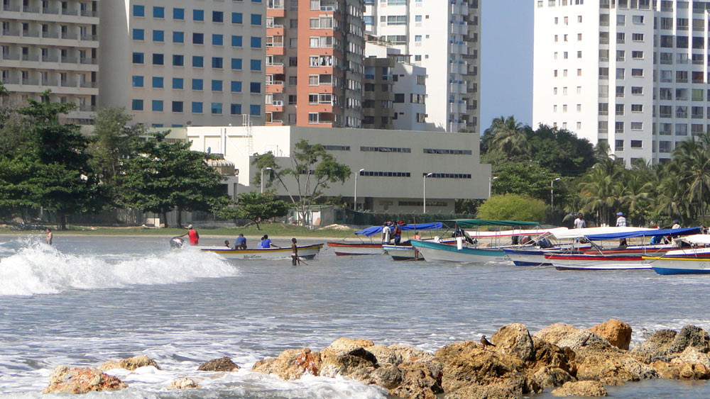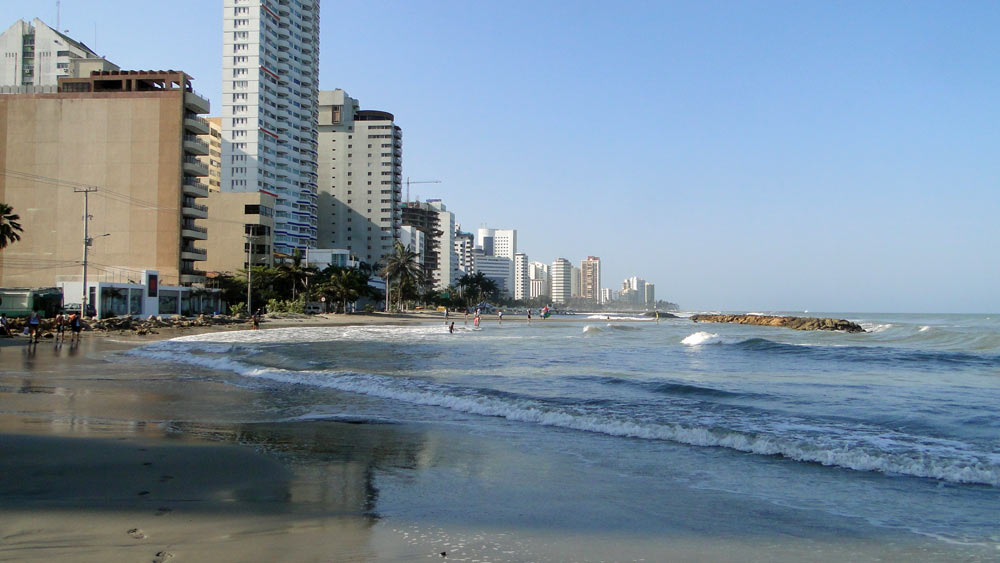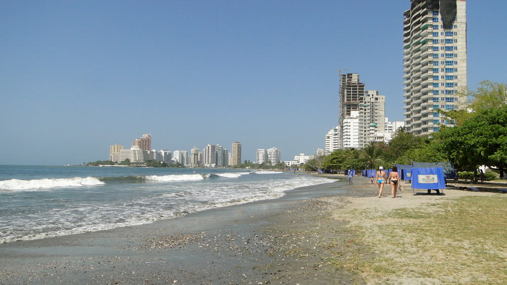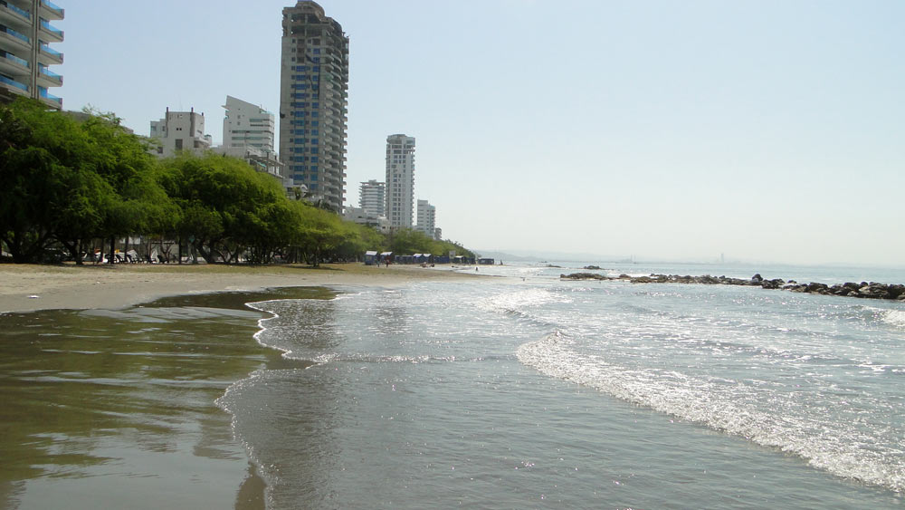 Las playas más clásicas de Cartagena se extienden hacia el este del aeropuerto, a partir de Crespo, hacia la Boquilla