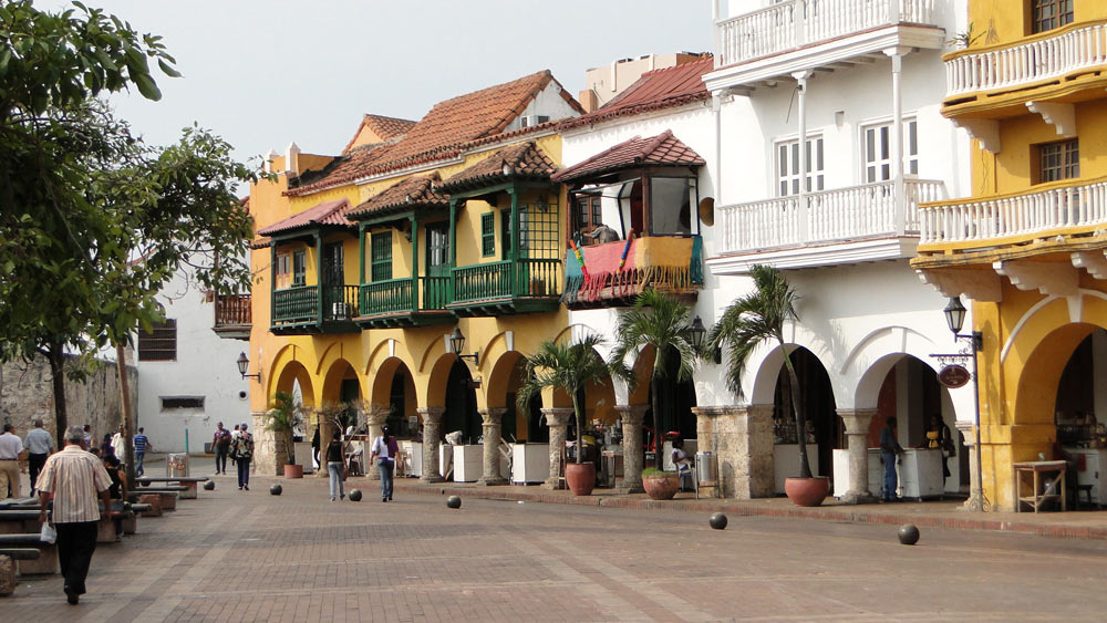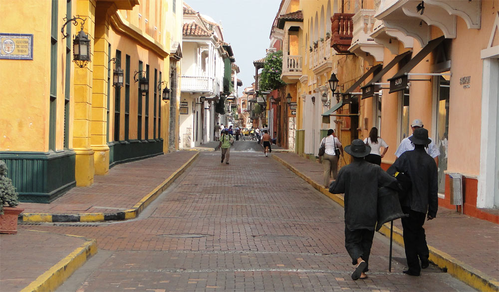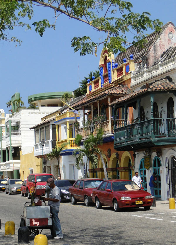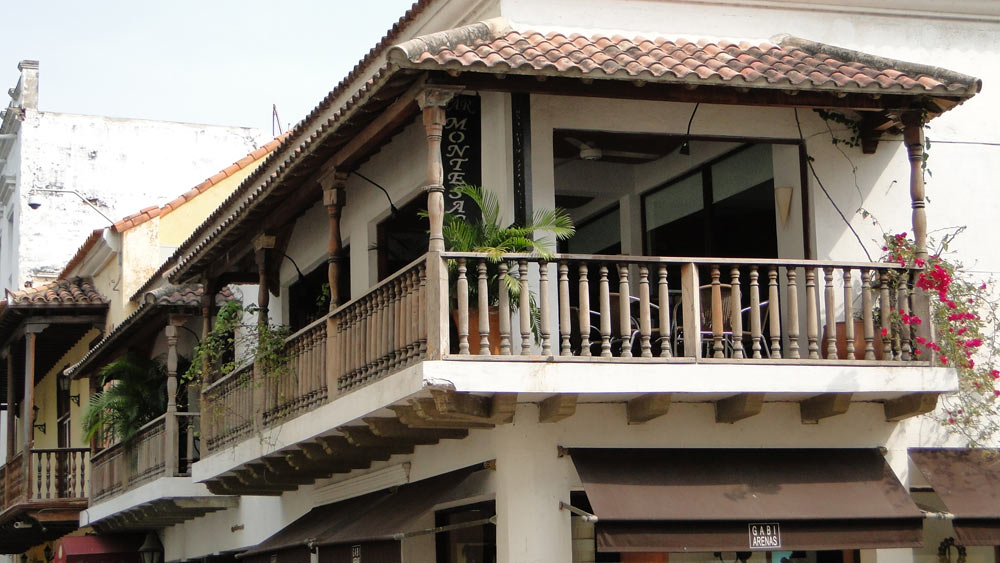 Cartagena es un pequeño laberinto de calles y esquinas como estas. Todos los edificios con balcones y grandes puertas.
