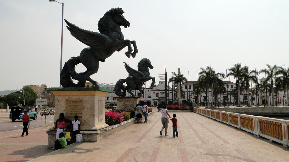 La entrada del restaurant San Pedro (ubicado frente a la iglesia San Pedro Claver), y las esculturas de chatarra de esa plaza (realizadas, creo, por Francisco Cardona Suarez)