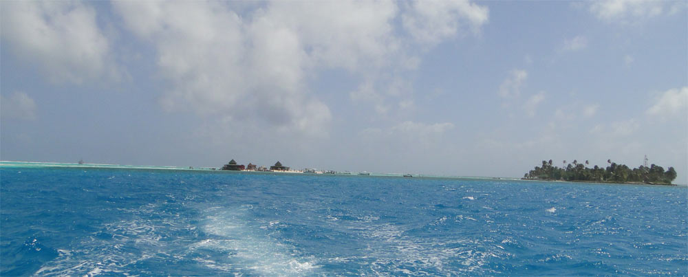 El Rose Cay ("acuario"), a la izquierda, y el Haynes Cay, a la derecha, desde la lancha