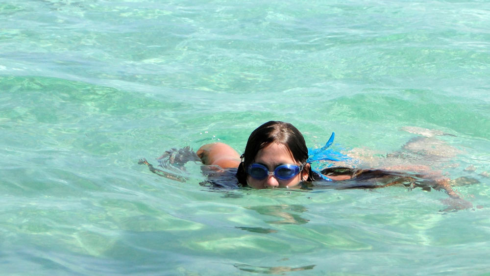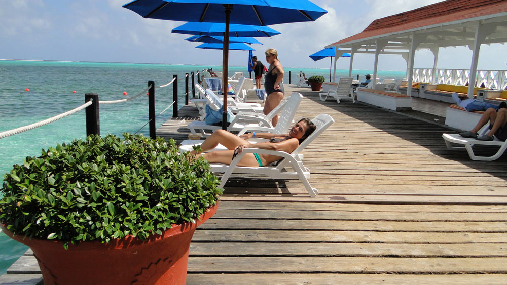 Vista de Jhonny Cay y el mar de los 7 colores desde la zona de la piscina