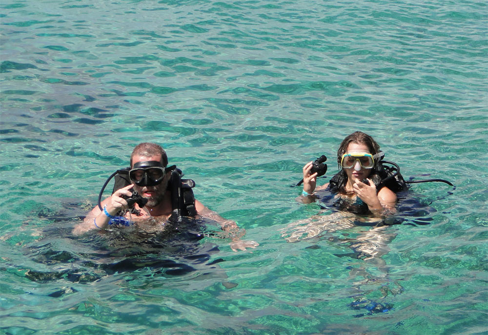En San Andrés hicimos el bautismo de buceo. Tuvimos un instructor, Mauricio, quien nos dió un breve curso teórico y práctico en una piscina del hotel...