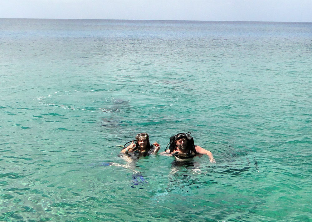 Finalmente, volvimos a la superficie, Diana con el caracol vacío que encontró en el fondo.