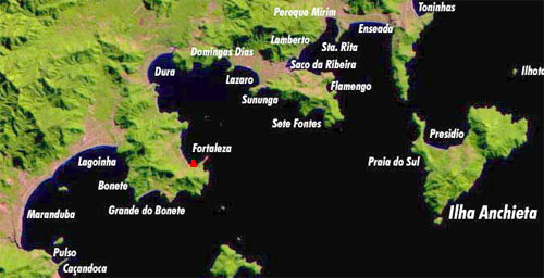 Como se ve en la vista general de la Bahia Fortaleza, cerca de la pousada, se encuentra
