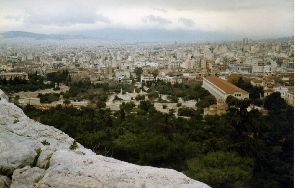 Vista del Agora, desde la acrópolis (a la izquierda está el