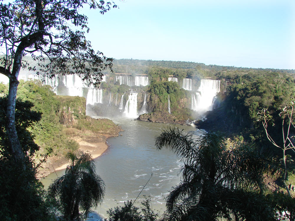 Vista aguas abajo del río Iguazú. A la izquierda los saltos Dos