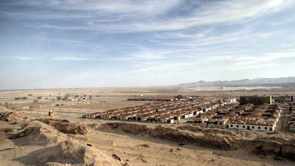 El bloque grande es el teatro. Al fondo, la actual salitrera