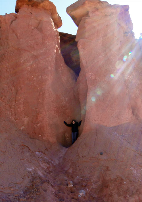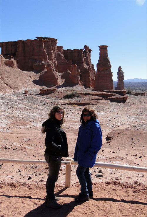 Diana, trepada a una de las formaciones, y junto a Nora frente a