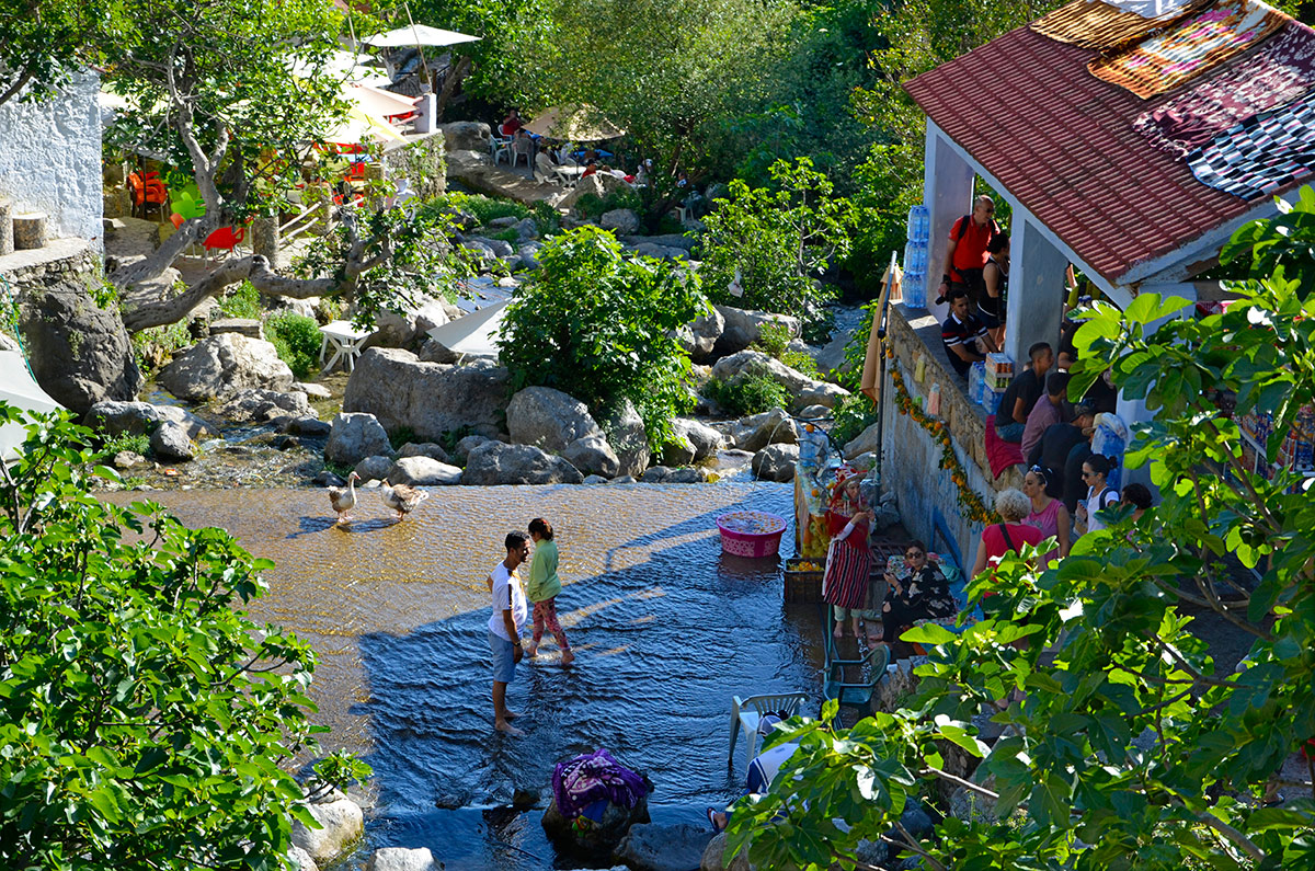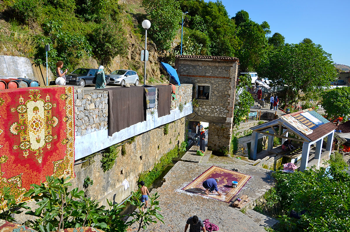 Así llegamos hasta el puente donde se encuentra el manantial Ras el Maa, de donde surge agua limpia y muy fría, y donde funciona un "lavadero" de alfombras y todo tipo de prendas