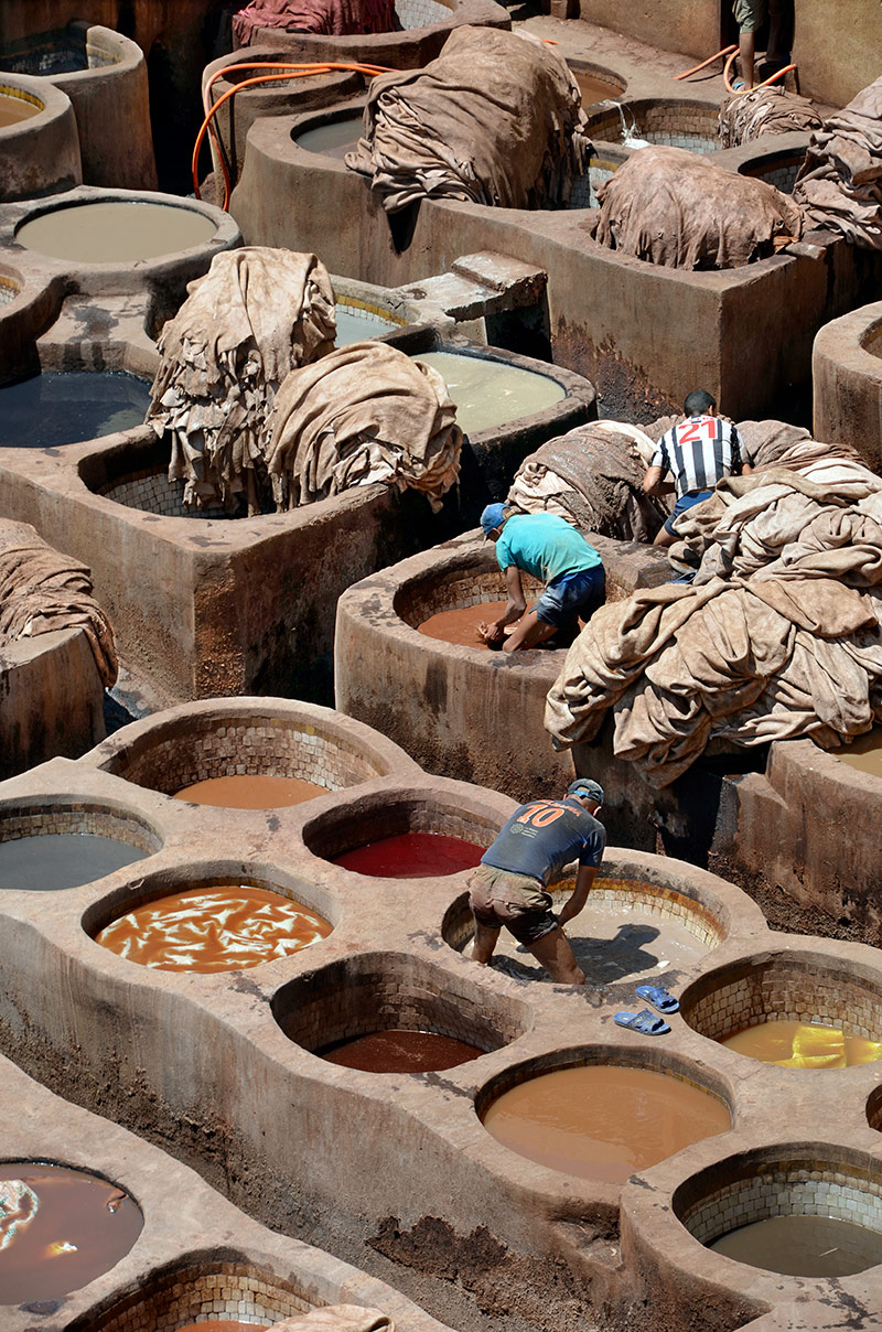 El sector de la derecha es el más grande e impresionante, y también colorido: ahí es donde se tiñen los cueros