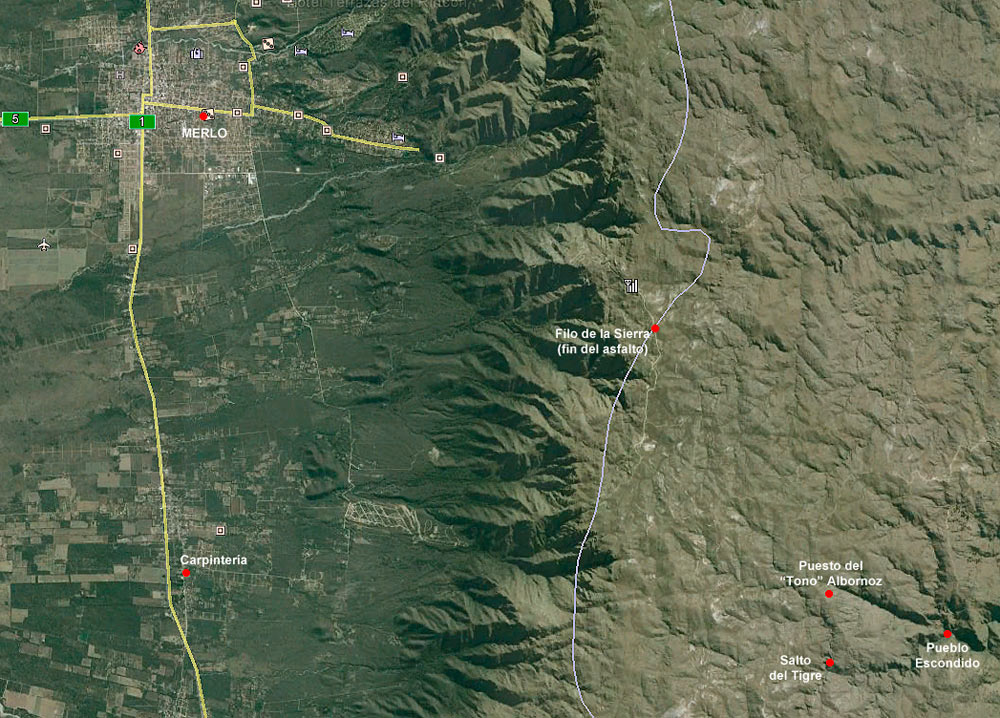 Volviendo a Merlo. Abajo, Pueblo Esconcido, a la derecha, el Cerro Aspero