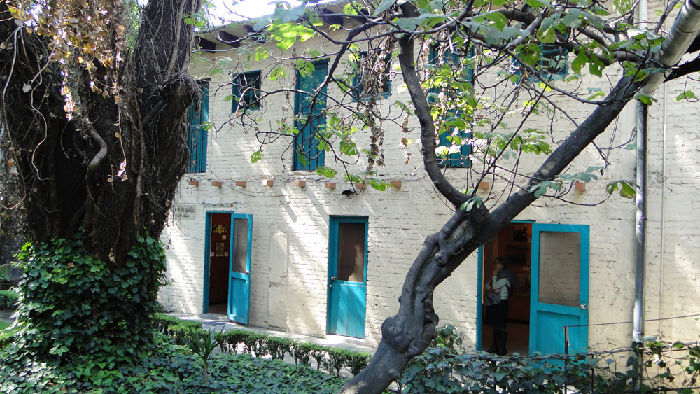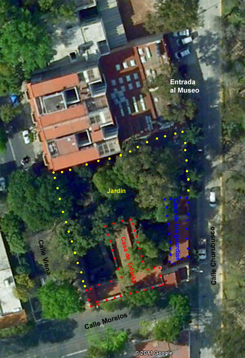 El jardín, el monumento, y la casa de Trotsky (visto desde la