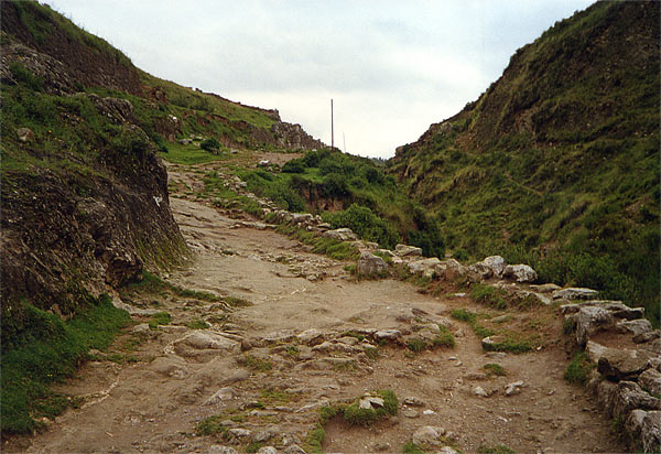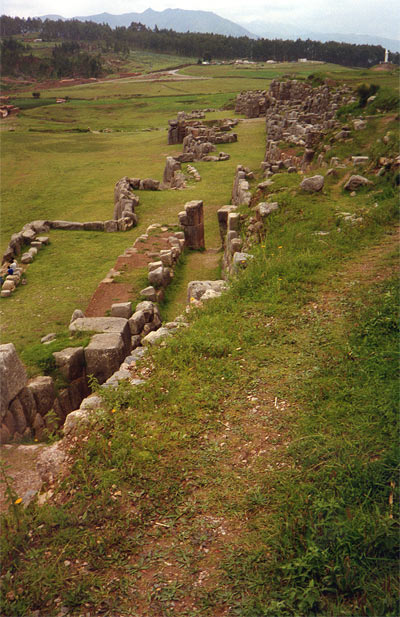 Vista desde la explanada Chukipampa hacia las murallas en zigzag
