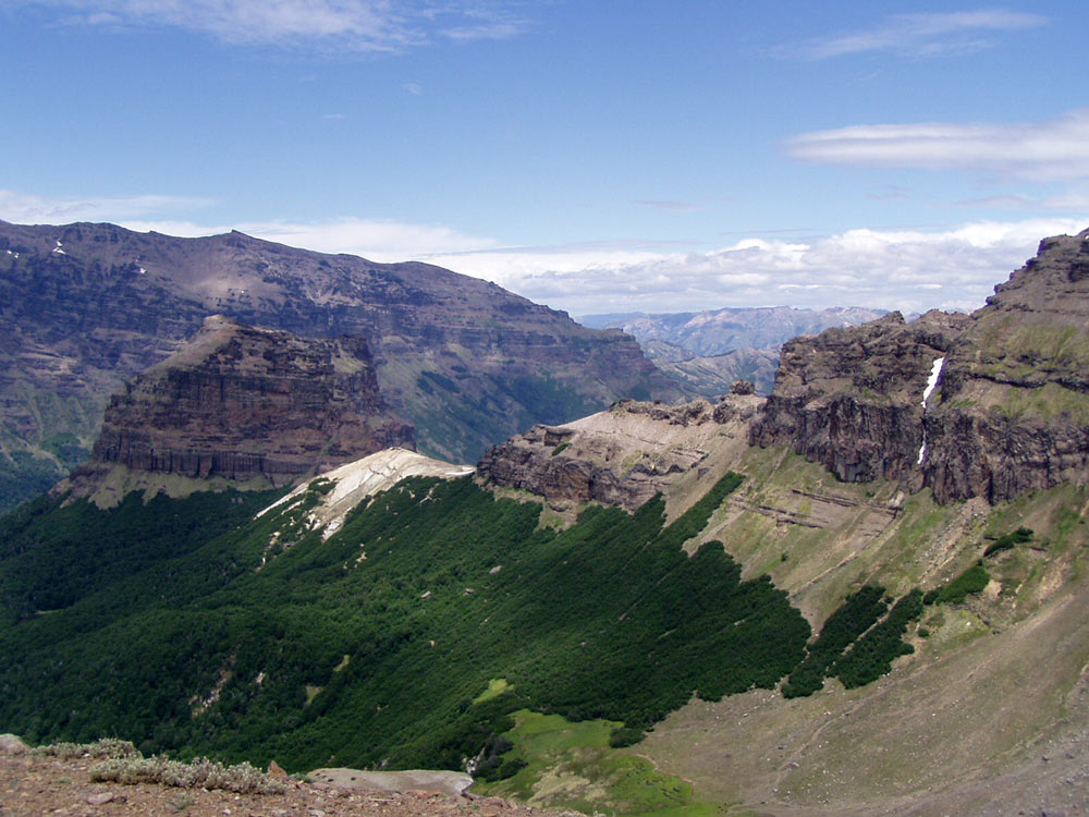 Bajando del cerro teta. Vista de la base del complejo. Al fondo,