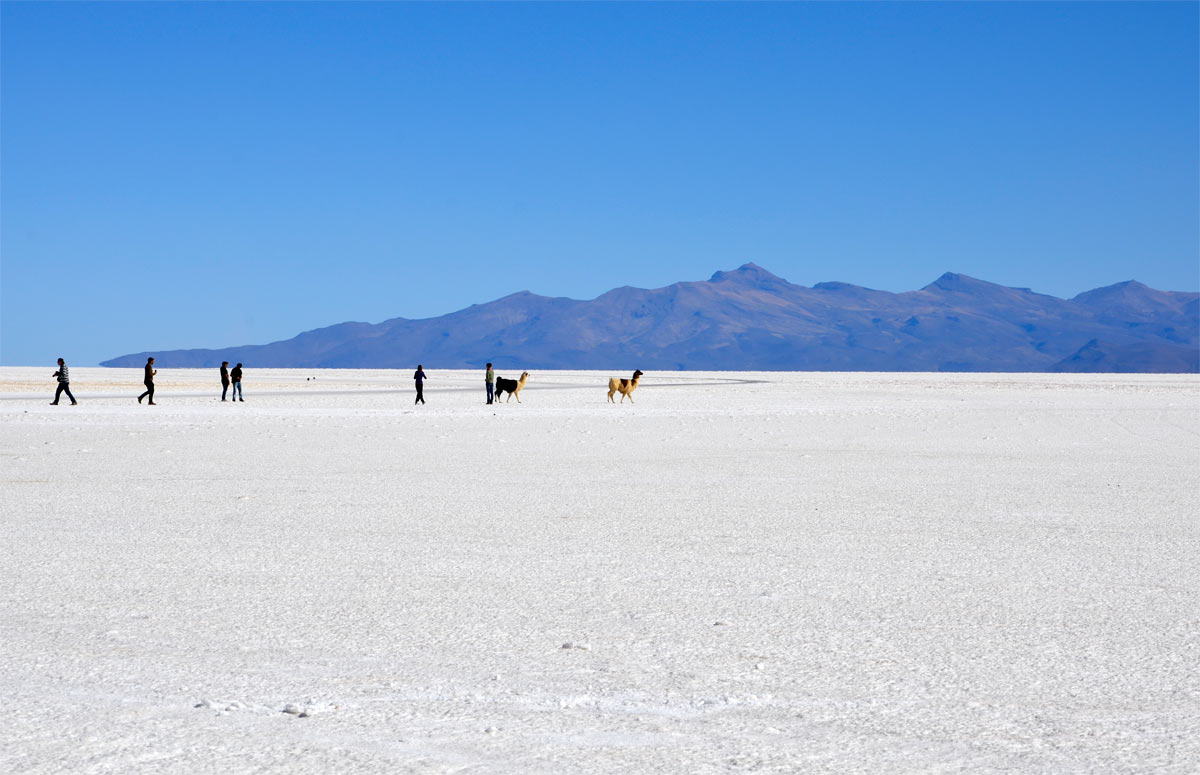 (nos dijero que las llamas tienen los ojos vendados, porque así transitaban por el salar de día: no había anteojos de sol para llamas :-) )