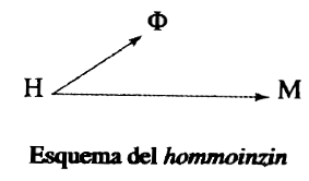 Y tenemos la histérica, que no es lo mismo que las mujeres, que dice la verdad respecto de la relación sexual. En particular, ella es tan capaz de hacer como el “todo hombre” mismo, a saber, mediante la imaginación. Por eso no lo necesita. Y si por casualidad le interesa la relación sexual “es preciso que se interese en ese tercer elemento, el falo”. Pero para interesarse en el falo, ella debe hacerlo en relación con el hombre. Y como respecto del hombre, no es seguro que “haya siquiera uno”, puesto que “todo hombre” es solo esencia (y no existencia), “toda su política girará hacia lo que llamo tener al menos uno” (10). El “al menos uno”, como función esencial de la relación, en la medida en que sitúa a la mujer respecto del punto ternario clave de la función fálica, es lo que Lacan decide escribir así: “el hommoinzun”.