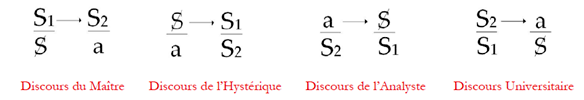 Finalmente, una última operación consiste en la eliminación de una de las aristas, de donde resulta “la fórmula mediante la cual esquematicé mis cuatro discursos” (65) …